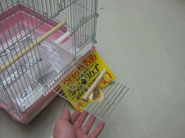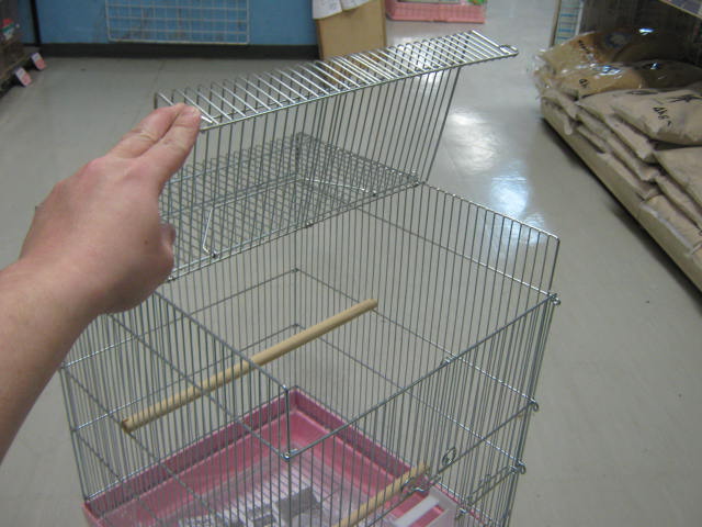 「手のりカゴ」というのはこんな風に扉が開くので、良く馴れた手乗りの鳥さんが出て来易いようになっております。
