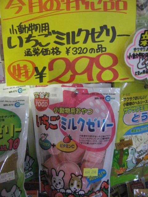 これまた人気の小動物のおやつ!いちごミルクゼリー 特価!! ¥298!!