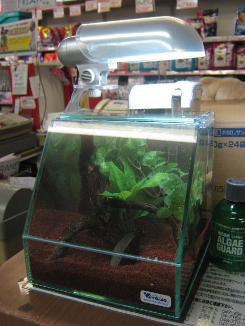 使う水槽はコレにしよう♪ 小型水槽にライトと外掛式フィルターなどが付いたセットです。