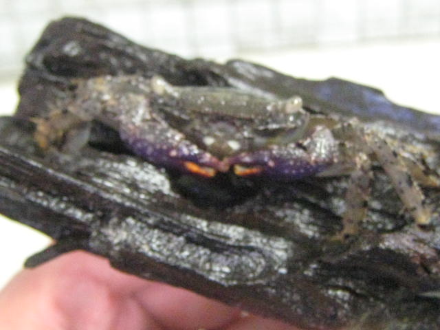 おお、確かにムラサキだ。キレイじゃないすか。「インドグレー・モザイククラブ」というそうです。このカニ。1匹 ¥450。いかがです? ※ちなみにメガネ君の第一声は「ゴマプリンみたい」