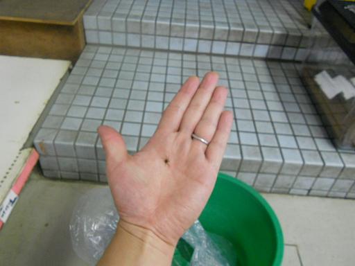コレでーす!! ・・・「は?」って感じでしょうか? でも、一応は分かります? 私の手のひらに乗ってる鼻くそみたいに小さいやつ。 これが今回私が一番入荷を心待ちにしていた生き物です!