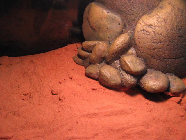 でも、この砂の中に3匹のトカゲさんが埋まっているんです。ちょっと砂をほじくってみると・・・