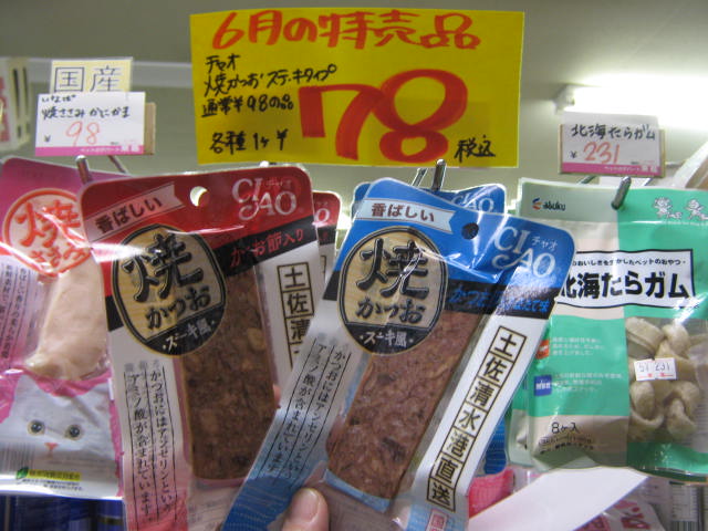ネコちゃんのおやつ!大ヒット新商品!! 「焼かつお ステーキ風」!! 特価!! ¥78!!