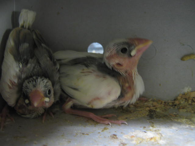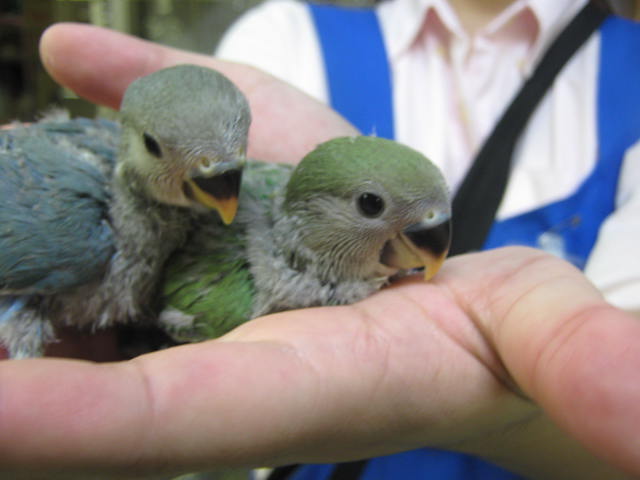 そしてコチラが前回最後に書いた小桜インコのヒナ!右がノーマルで左がブルーです。