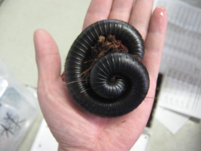 じゃ~ん!こんなにでっかい「ヤスデ」!! タンザニア・オオヤスデっていいます。本当は伸びて歩いてるところを撮りたかったのですが、丸まっちゃって伸びてくれませんでした。ちなみに柏店のスタッフは女子スタッフだけでなくメガネ君までこれには「どん引き」です