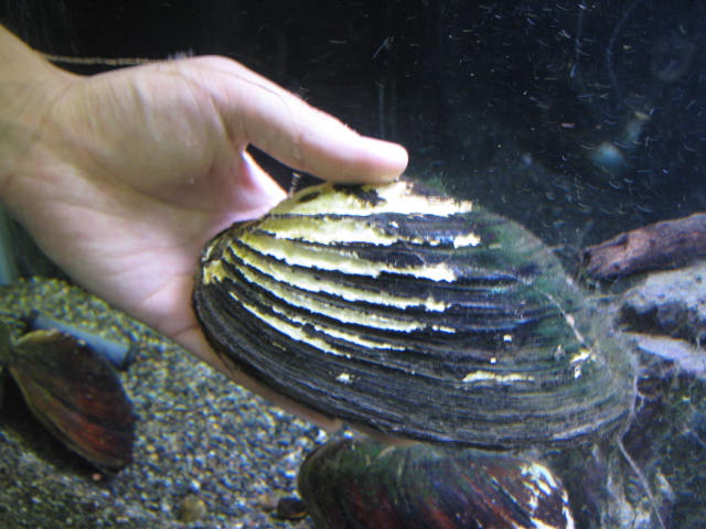 こんなでかいジャンボドブ貝も入荷しました!このおててはメガネ君の手。「持ちな!」と言ったら持ってくれました。