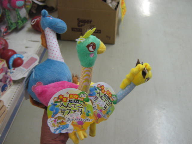 ワンちゃんのおもちゃ「へんてこサファリ」。 パッと見何の変哲も無く面白くも無いただのダチョウやキリンのぬいぐるみです。 しかし、ワンちゃんはおもちゃを振り回すのが結構好き!