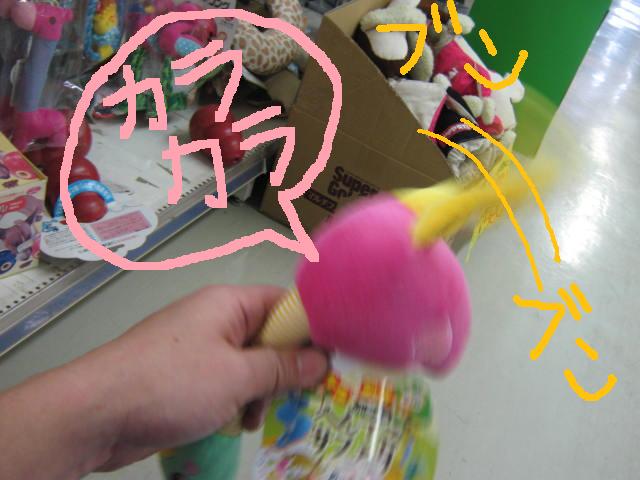 ワンちゃんがやるように、首のところを持って振ってみると…「カラカラ」って音がします。