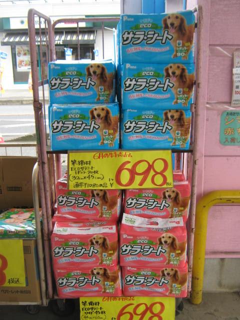 ペットシーツ「エコサラ・シート」レギュラーサイズ・ワイドサイズ共に特価!! ¥698!!(めちゃくちゃ売れてます!) など特売品まだまだい~っぱい!6月末日までですよ!