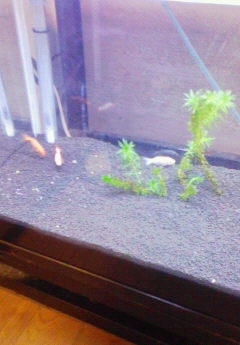 この水槽をセットしたばかりの頃とくらべると水草のアナカリスがちょっと成長しましたね。