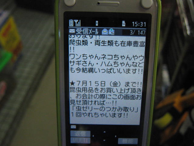 昆虫用ゼリー、昆虫マットなど何でもいいので何か昆虫用品をお買い上げ頂き