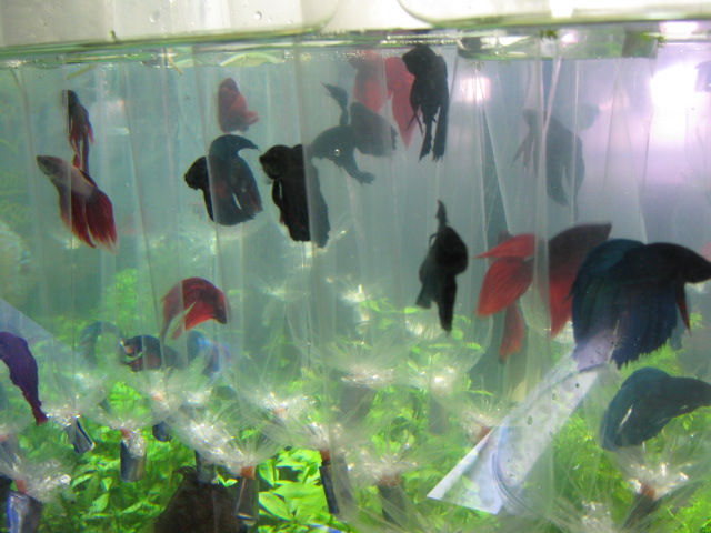 いや~、一度にた~くさんのベタを袋にパッキングするの大変な作業でした