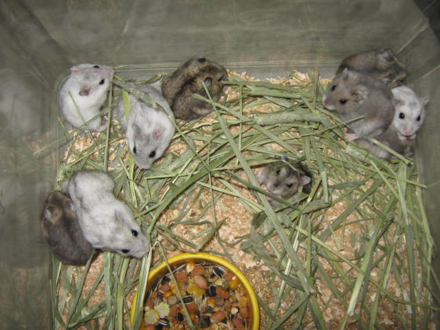 ジャンガリアン、パールホワイト、サファイアブルーの3種のハムちゃん達。