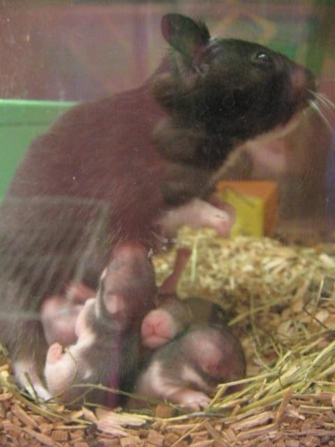 柏店のカラーハムスターが赤ちゃんを産んだんです!赤ちゃん達みんな元気良くお母さんのおっぱいに吸い付いております。