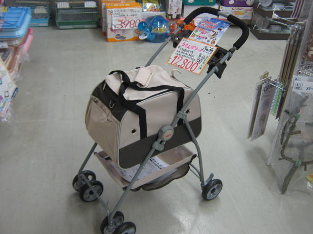 展示品をご覧になられて、気に入って頂けたら、お取り寄せ可能です。これでますます「うさんぽ」が楽しく、ラクになりますな! もちろん、ペシャーンっと折りたためますし、