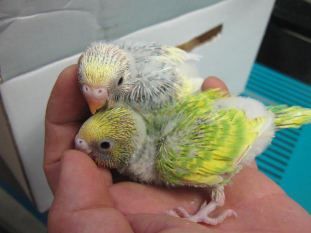 セキセイインコのヒナ!今回はこういった変わったお色のコも入れてみましたよ!