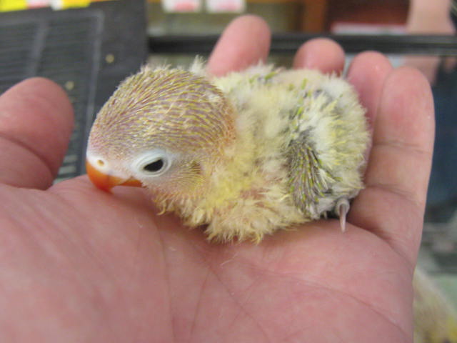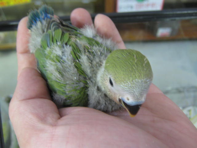 小桜インコ(ノーマルカラー)! まだちっちゃいから、クチバシも真っ黒だ。
