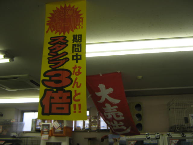 お店の外には「大売出し」ののぼりが立ち並び・・・(東葛ペットではのぼりがコレになっている時は何かある証拠です!)