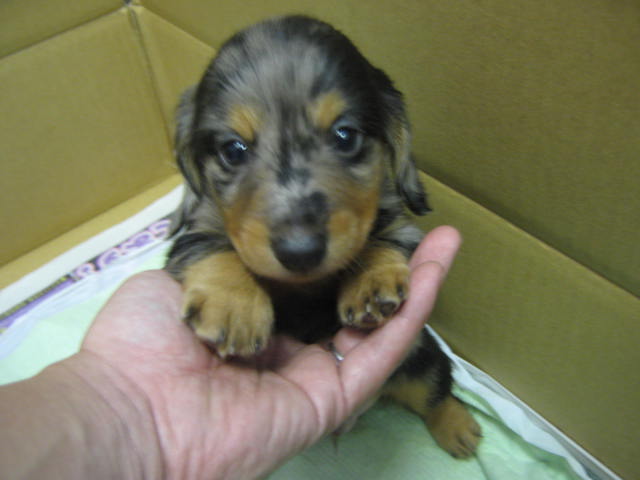 ロングコートのミニチュアダックス!毛色はシルバーダップル男の子でございます!むっちむちでかわいいです!