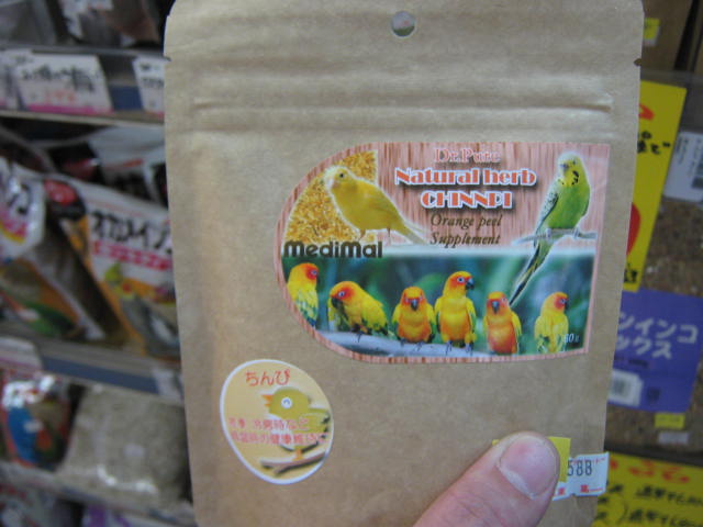 鳥さんを飼ってらっしゃる方、これからの季節是非使って頂きたい!「ちんぴ」。温州みかんの皮を乾燥させて粉々にしたやつです。 これを鳥さんが食べるとカラダがぽかぽか温まるんです!