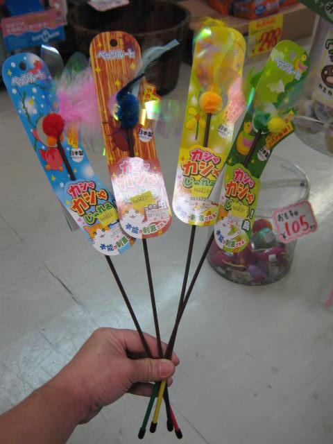 画像では分かりにくいですが、こちらのネコちゃんのおもちゃ、透明なフィルムみたいなやつがついてるんですよ。そのフィルムみたいなやつの音がネコちゃんにはたまらないらしく、このシリーズは爆発的ヒットです!