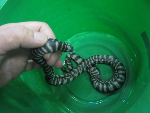 ヒメヤスリヘビ。こちらはお魚のように水中で飼うヘビさんです!餌もメダカや小赤を食べます。
