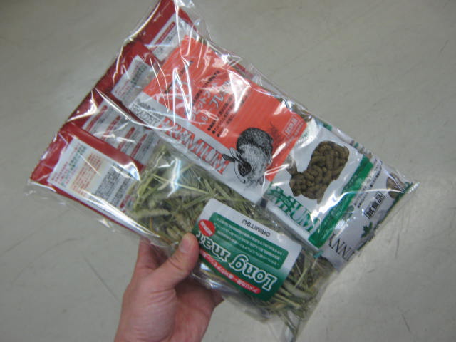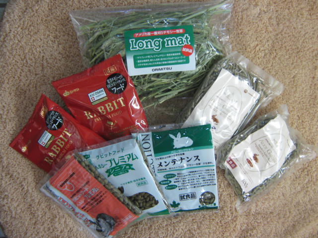 小袋牧草(ロングマット)と色んなラビットフードの小袋サンプルの詰め合わせ!!