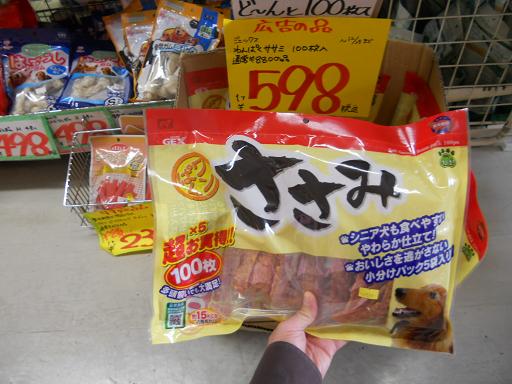 普段は¥880のささみも¥598!!100枚も入ってるんですよ!これ!・・・ということは1枚6円弱か!なんかニワトリ