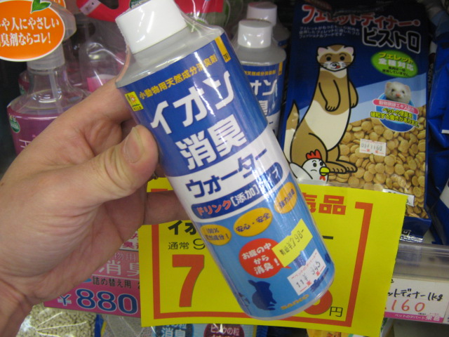 天然のもので作られてるから安心の、飲ませる消臭用品!「イオン消臭ウォーター」。