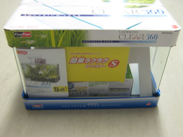 まずは36cm曲げガラス水槽に外掛け式フィルターとライトが付いたセット!!