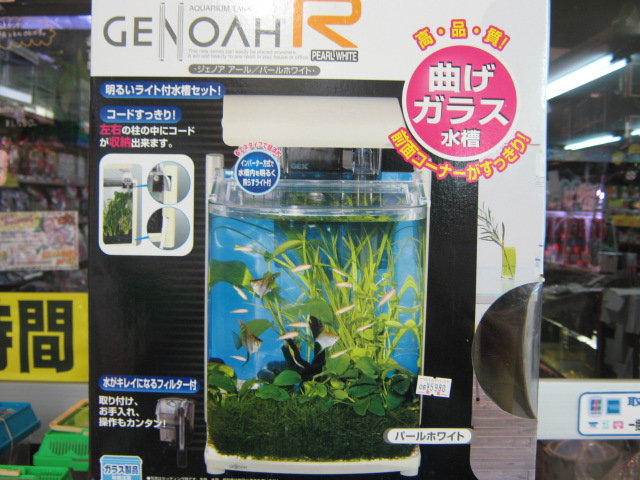 おしゃれな曲げガラス水槽になんと外掛け式フィルターとライトまでついたインテリア性抜群の「ジェノアR」!! こちらなんと¥9800の品→激特価!!!