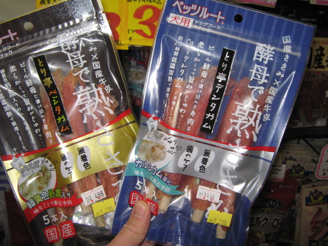 「酵母で熟ささみ」!! ただのささみ巻きガムではございません!これは私オススメ品です!何がすごいのか? ちょっとイジワルしてここでは書かないでおきます。柏店で私の書いたPOP(今は特売品POPの下に隠れてますが)を見て頂くか、このブログの過去記事を探すと分かります。オススメです