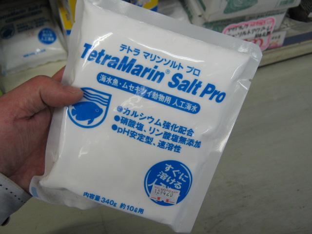 塩水はこの400円程度の人工海水の素で簡単に作れます!分量についてもお教え出来ます!カンタンです。