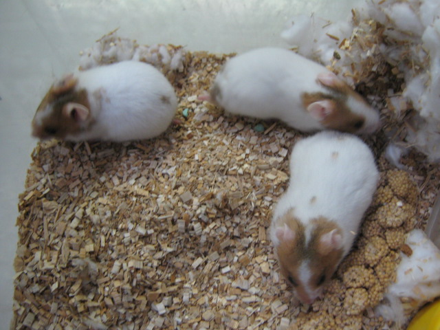 3匹来ました。ドミノが入ったら絶対柏店にまわしてくれと、本社勤務の愛人に随分前からお願いしておいたのですが、お願いしてから数ヶ月経ってやっと来ました。彼女の私に対する愛情が薄れてきてしまったのか、それともそれだけドミノハムスターの入荷が少ないっていうことなのか・・・おそらく後者だと信じております