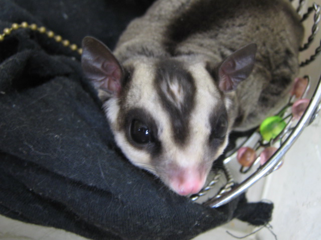 いえいえこれもやっぱり「俺は男だぞ!」っていうシルシです。ここに臭腺があって、成熟したオスのフクロモモンガは、ここから出たニオイをメスを呼ぶ為にあちこちこすり付けるので、こうしてここがハゲてしまうんです。ですから、病気ではありません。