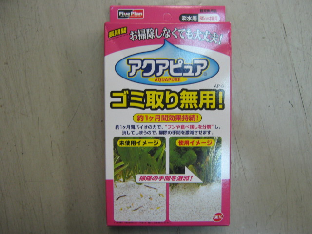 その名も「ゴミ取り無用」!!効果は約1ヶ月続き、お魚のフンや食べ残しを分解して消してしまいます。ろ過フィルターの中に入れて使う商品です。