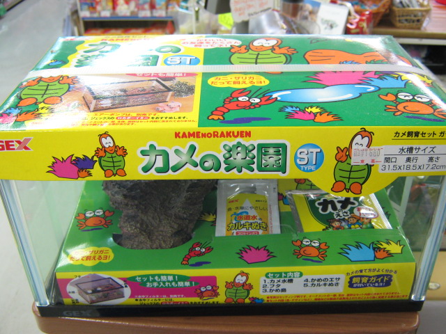 「カメの楽園ST」。ちゃんとカメさんが上がれる陸地付き!!¥1880の品限定15本!!¥1,380!!カメさんだけじゃなく、ザリガニやイモリちゃんの飼育にもOKのセットです!!
