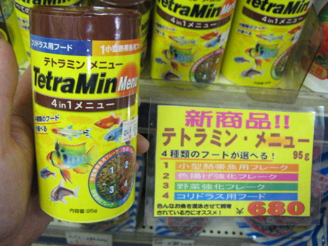 「テトラミン・メニュー」!4種類のフードが中で4分割された1つの容器に入っております。