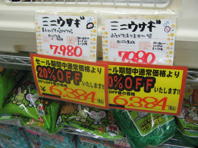 これ、すごいでしょ? ウサギさんみんな20%OFF!!です!