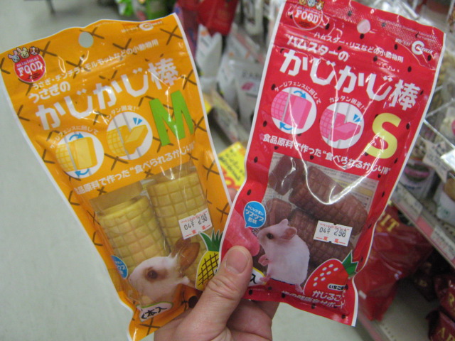 お次はこちら!これは結構面白い!「かじかじ棒」!左がウサギさん用で右がハムちゃん用。