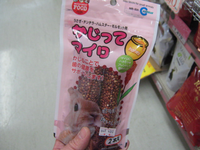 「マイロ」という穀物をハチミツで固めて棒状にしたもの!この商品は一応ウサギさん用ですけど、マイロは鳥さんも好きですから、鳥さんにもいいかも!