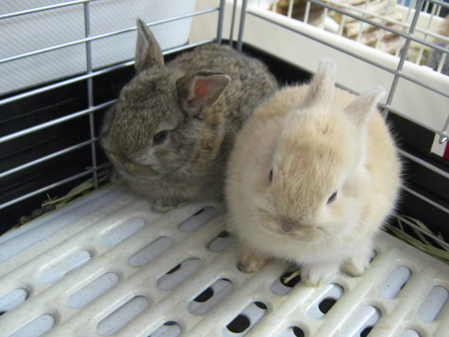 え~っと、左が女の子で右のコが男の子です!お父さんがドワーフラビットでママはミニウサギさんなんだそうです。