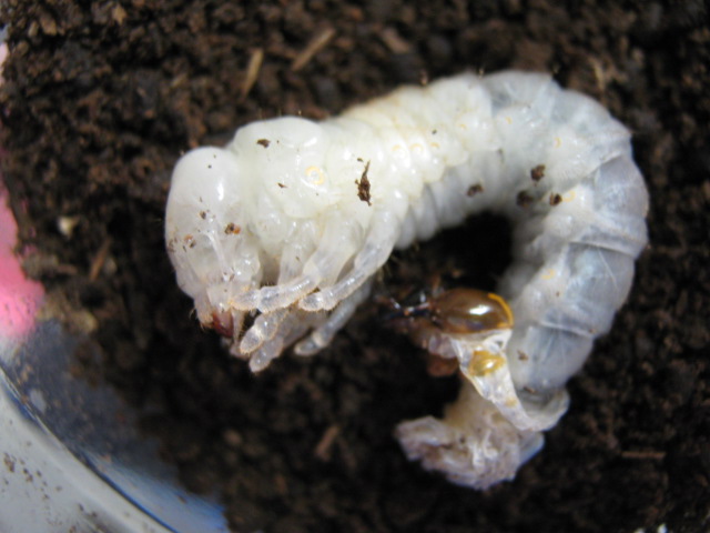 昨晩仕事を終え、さて帰ろうかと思いつつ、何の気なしにニジイロクワガタの幼虫に目をやると・・・