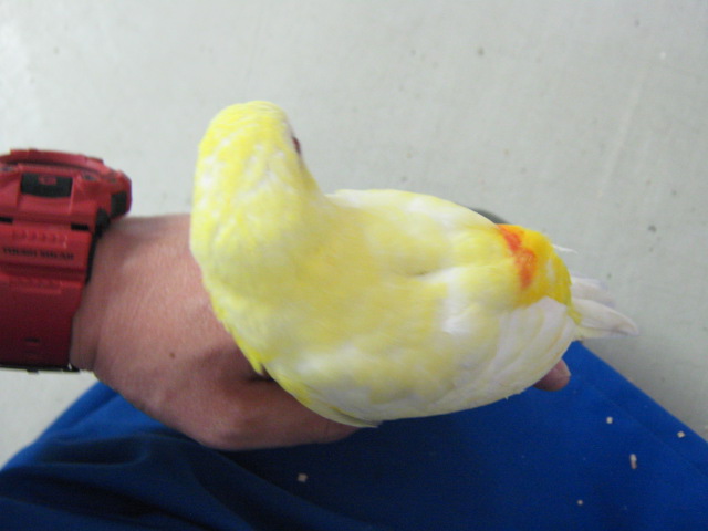 「ビセイインコ」のルチノー! まだヒナ餌を食べてる「お子様」です。 卸部で箱を開けてみたらこのコが入っていて、結構甘えん坊さんで自分から寄ってきたので気に入っちゃいました