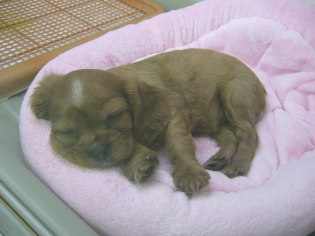 寝ちゃってる「キャバ嬢」です。キャバリアの女の子だから「キャバ嬢」。急いでるんだから、こんなギャグをいちいち入れてる場合じゃありません