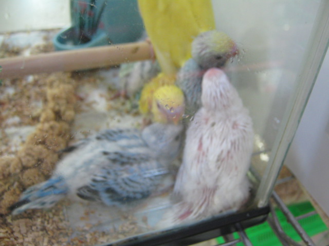 雑な画像で本当にごめんなさい。セキセイインコのヒナも色んな色のコ来てます!