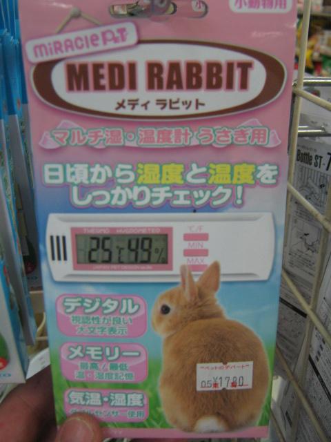 こちら!クール用品と言っても、こちらは実際ペットが涼しくなる商品ではなく、暑くないか?大丈夫か?を確認するための商品。 ウサギさん用のデジタル式温度・湿度計です! ウサギさん用となっていますが、他の小動物に使って頂いてもOKです。