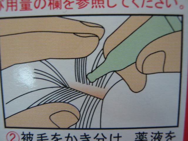 医薬品と比べると効果が低いのかもしれませんが、3ヶ所に垂らすことが出来、我々でも販売出来る医薬部外品。