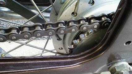 バイクのチェーンは時々キレイにして、油を注し直してやらないと、劣化が早くなっちゃうんです。