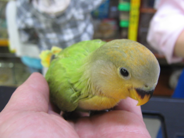 最後は・・・先日、もったいつけて結局ちゃんと紹介しなかった、ちょっと珍しいコザクラインコのヒナの画像!載せちゃいましょう